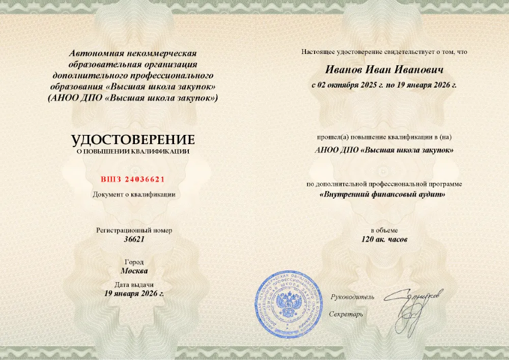 Повышение квалификации, 120 академических часов, 8 модулей: правовое регулирование и основы внутреннего финансового аудита, планирование и методика аудиторской проверки, выявление нецелевого использования средств и реализация результатов аудита. Онлайн-обучение в в Ростове-на-Дону с итоговой аттестацией.